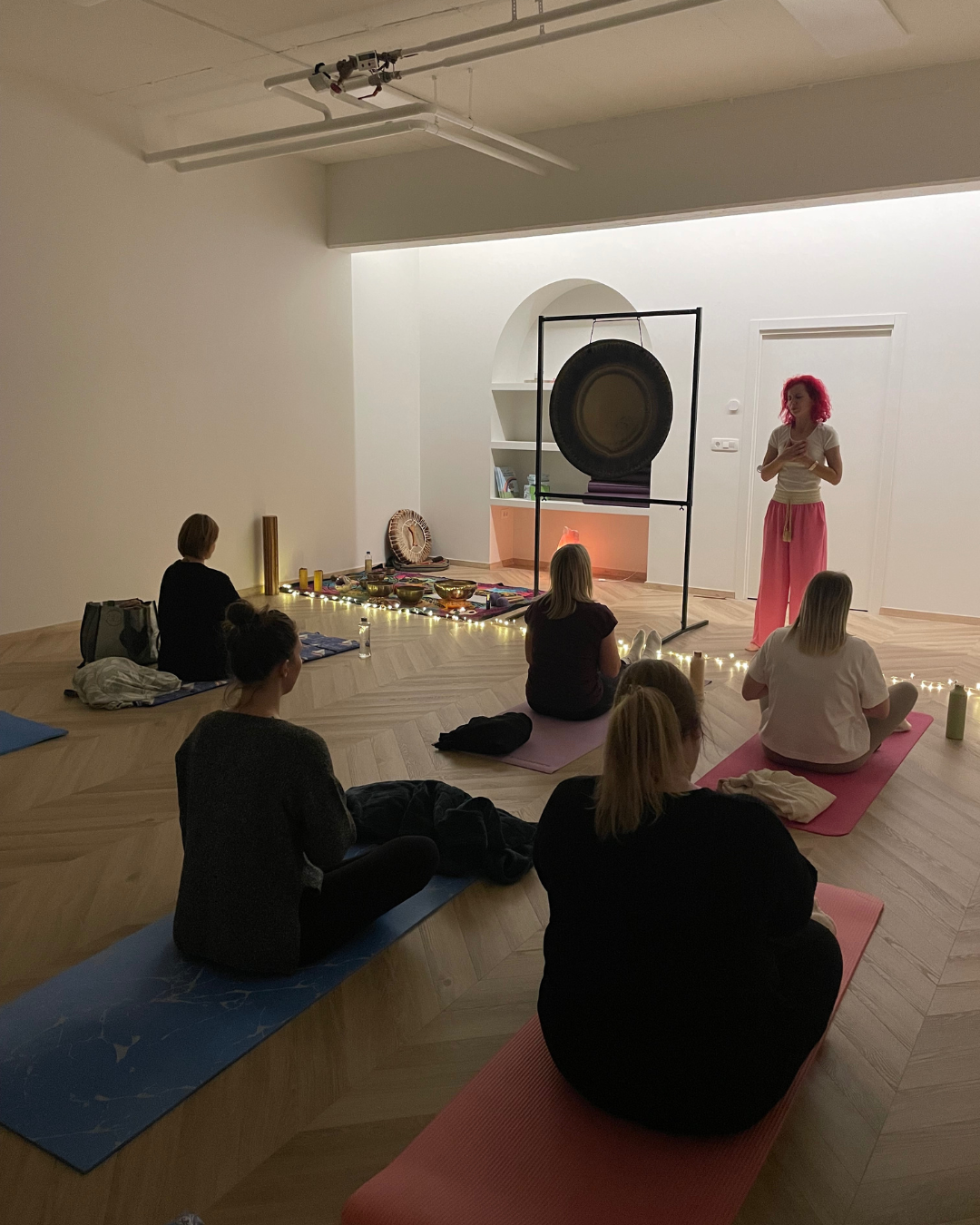Zvočna kopel je meditativna izkušnja, pri kateri vibracije tibetanskih posod, gongov in drugih instrumentov nežno delujejo na tvoje telo. Zvok se ne sliši samo z ušesi – občuti se v mišicah, živčnem sistemu, v celotnem energijskem polju.